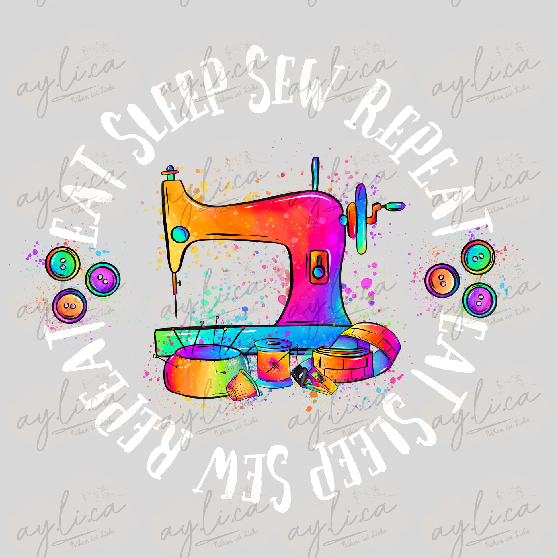 BÜGELBILD EAT,SLEEP,SEW… in WEISS in 2 Größen