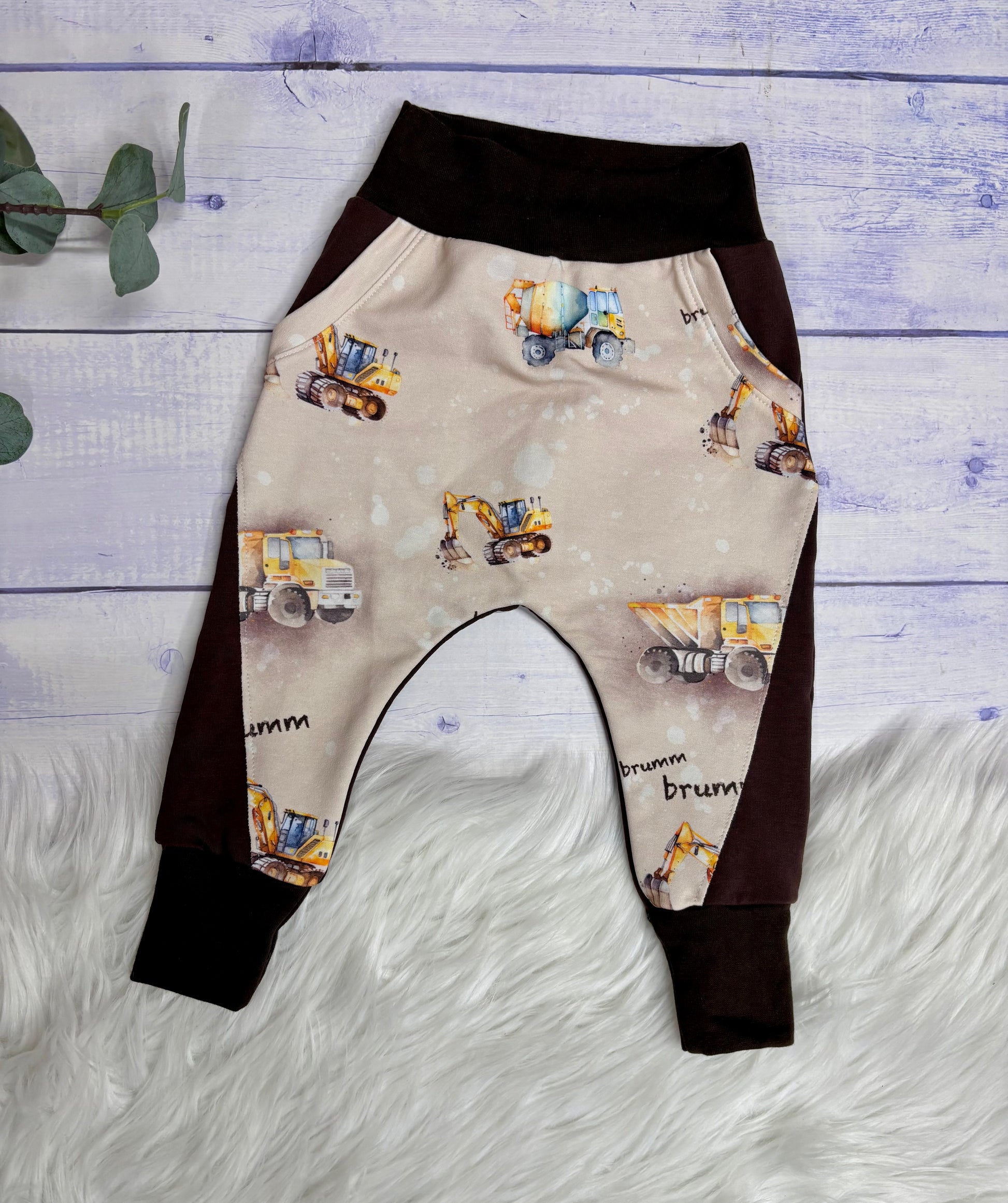 lässig lockere Hose in Gr. 86 mit trendiger Teilung und Hosentaschen.