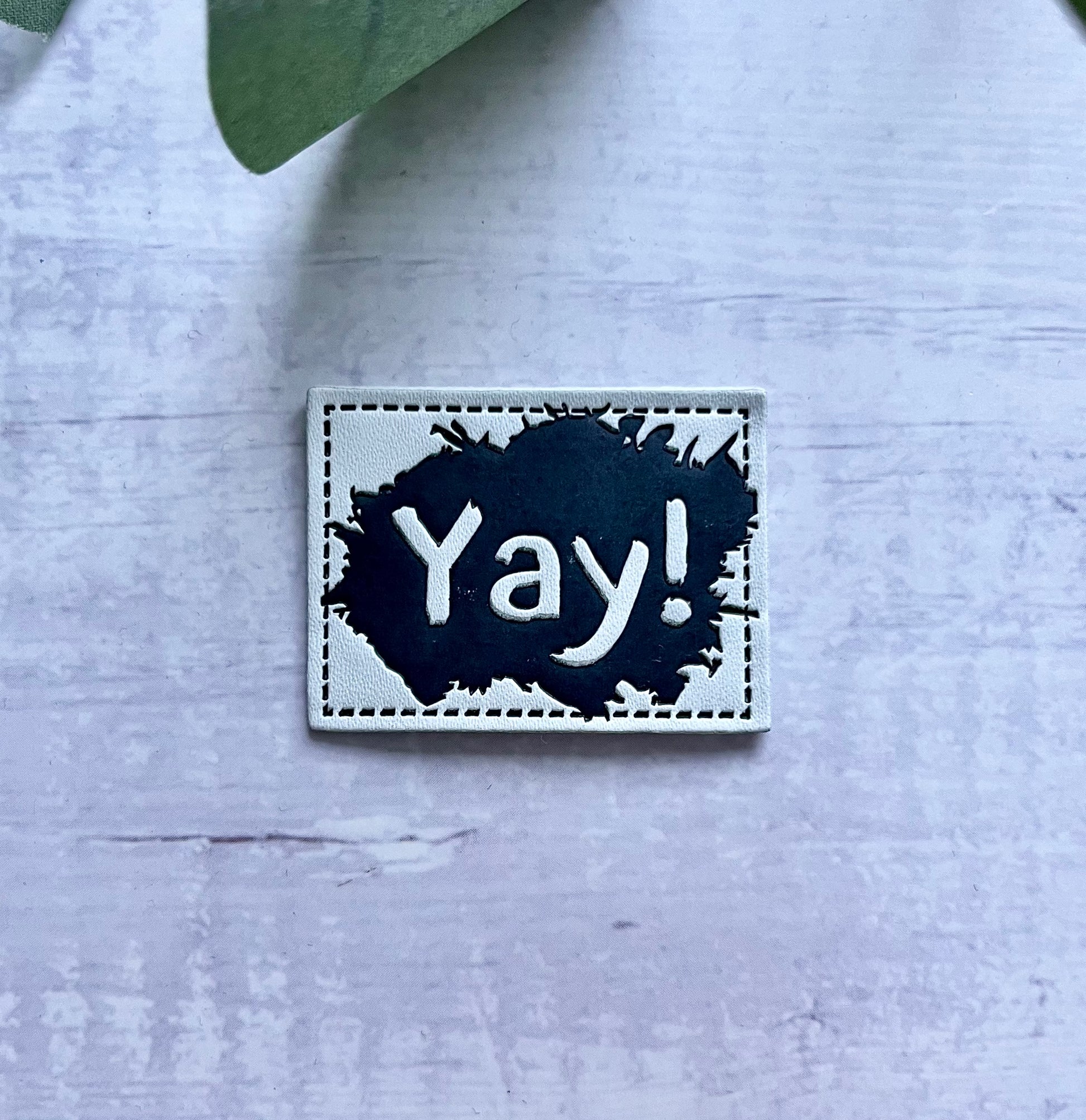 Cooles Label in weiß mit schwarzem Statement „YAY“